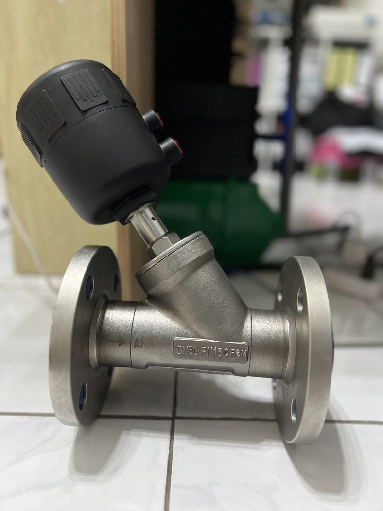 2 2 Way Angle Seat Valve พิสตันวาล์ว สเตนเลส วาล์วแบบลูกสูบ แบบหน้าแปลน 10K