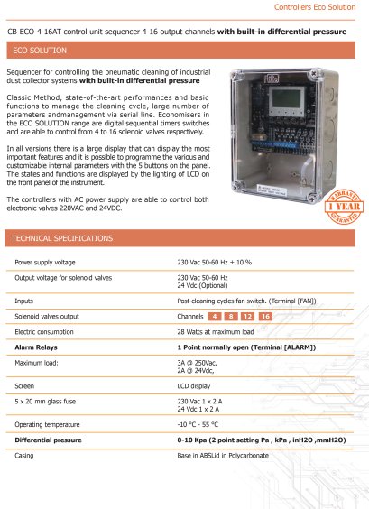 CB-ECO-4-16AT control unit sequencer 4-16 output channels with built-in differential pressureตู้คอนโทรลไฟฟ้าตั้งเวลาหรือ (Timer Control Valve) งานระบบกำจัดฝุ่นในโรงงานอุตสาหกรรม Dust Collector