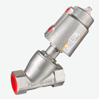 RJQ22 Stainless-Steel Angle Seat Y type 2/2 way. Single Acting Air Actuated Normally Closed. ใช้สำหรับงานไอน้ำ, steam, ลม,แก๊ส, น้ำ, น้ำมัน