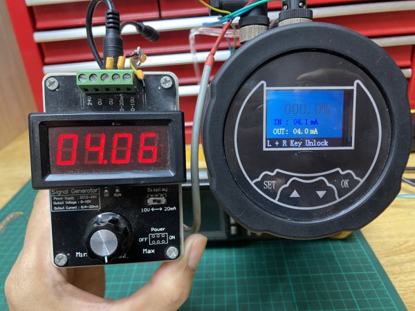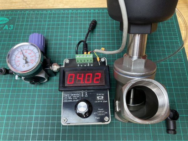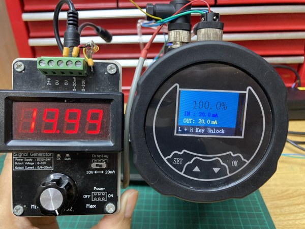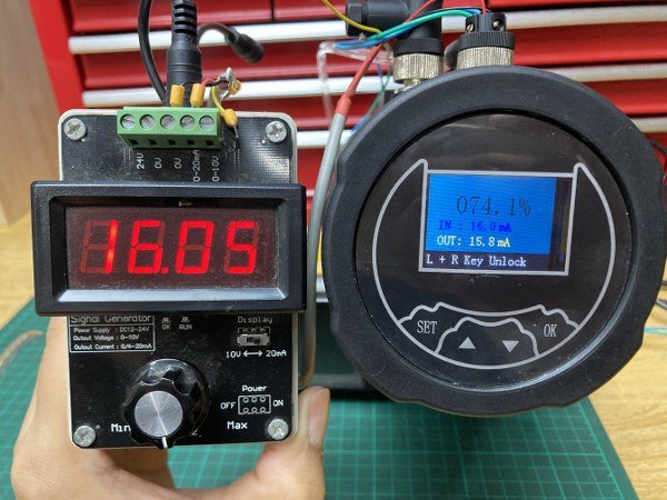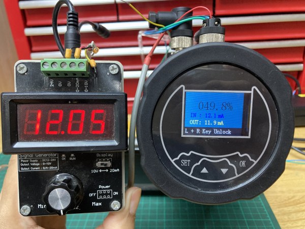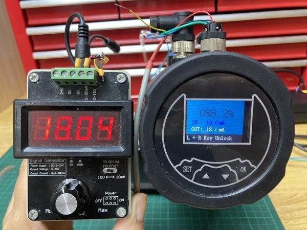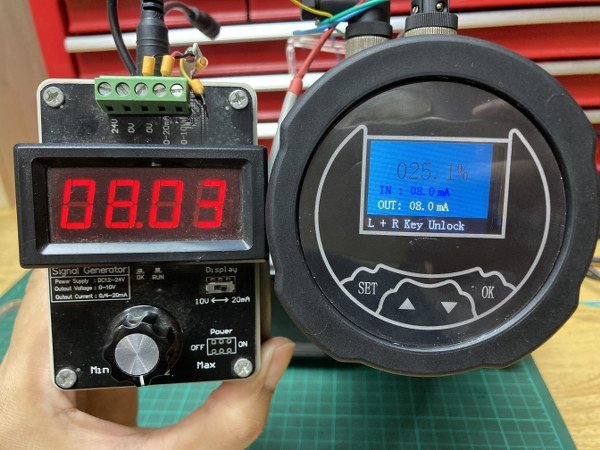 เริ่มต้น จ่ายกระแส Input 4 mA วาล์วปิด (This signal generator can use 4-20mA to generate voltage and control the current)