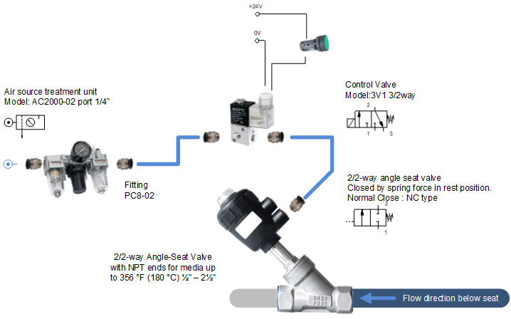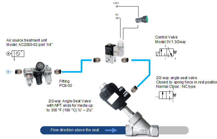 หลักการทำงานของวงจรนิวเมติกควบคุม Angle seat valve