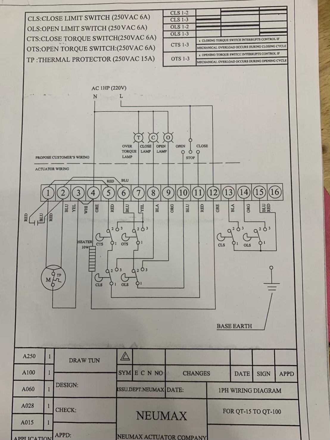 NEUMAX QT SERIES QUARTER TURN ELECTRIC ACTUATOR Model: QT03 220VAC