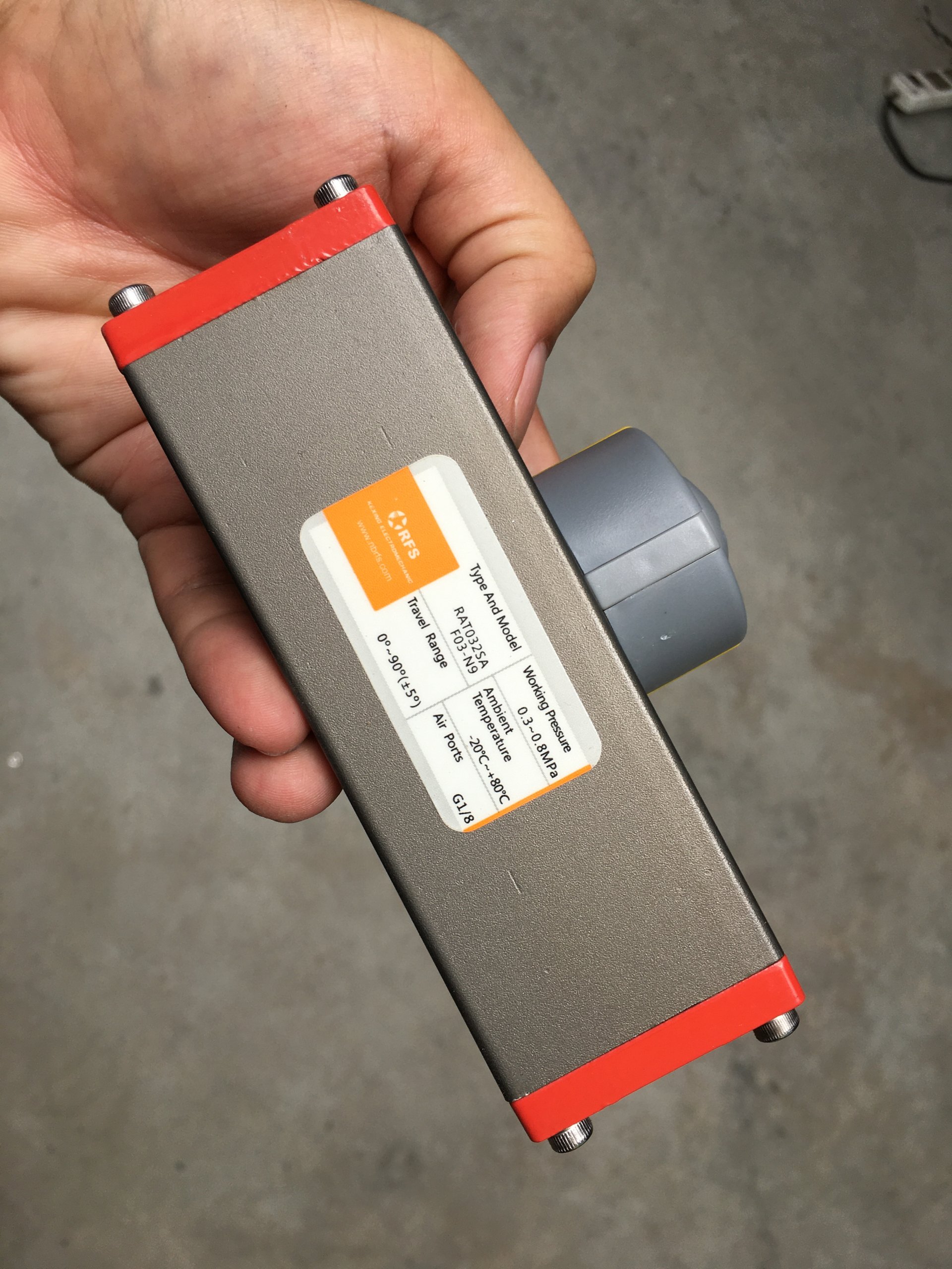 Pneumatic Actuator Valve ตัวบน RAT32DA double acting pneumatic actuator rotary ตัวจะสันกว่า  แต่ตัว RAT32SA single acting ตัวจะยาวกว่าตามรูปครับ