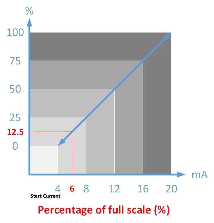 เปรียบเทียบ4-20mA เป็น 0-100% ให้เราอ่านค่าได้ง่ายขึ้นจะได้ดังนี้