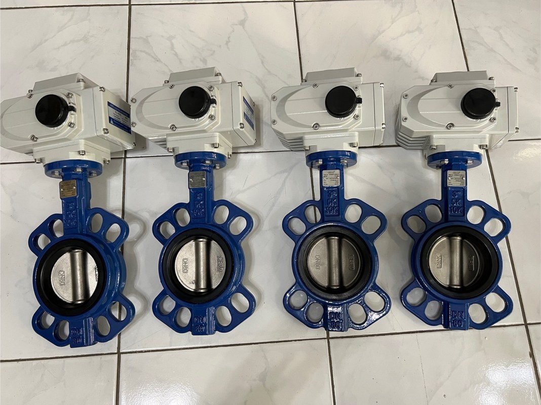 รูป หัวขับไฟฟ้าประกอบกับวาล์วปีกผีเสื้อ วาล์วปีกผีเสื้อ สแตนเลส (butterfly valve stainless steel)
