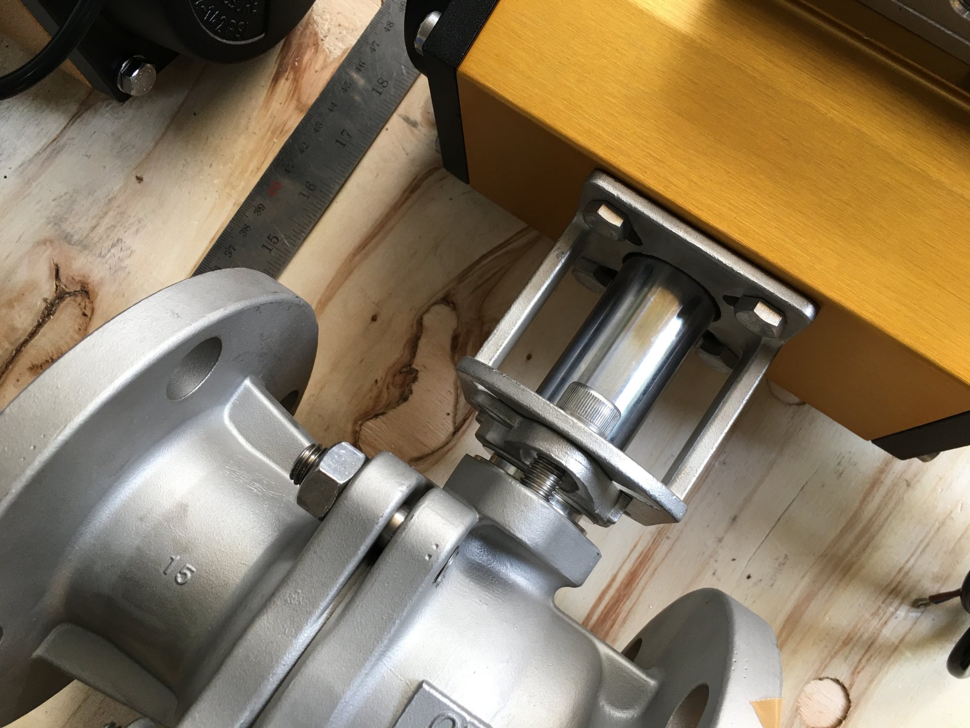รูป 2 ตัวอย่างการนำไปใช้งาน บอลวาล์ว หน้าแปลนสแตนเลส 10k ประกอบกับหัวขับวาล์ว SIRCA โดยใช้ Mounting Bracket ISO5211