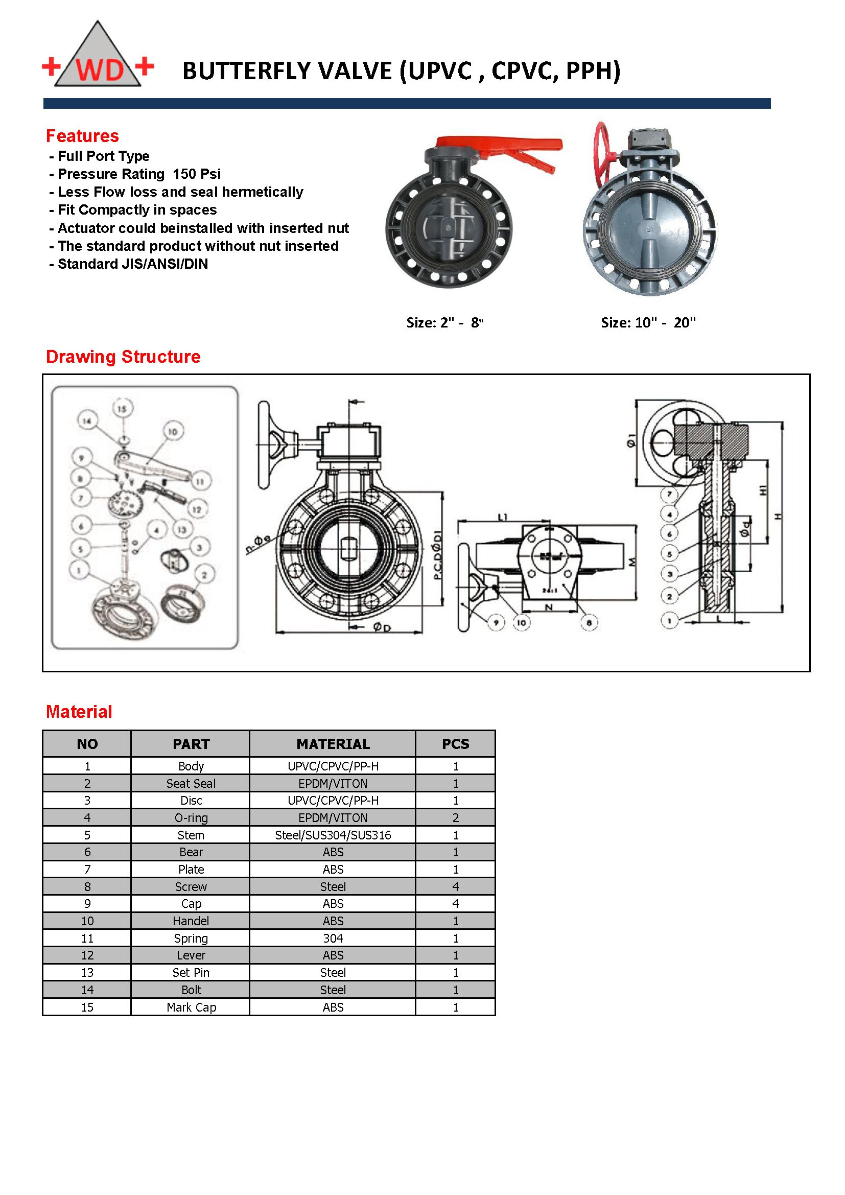 "WD" Upvc butterfly valve
