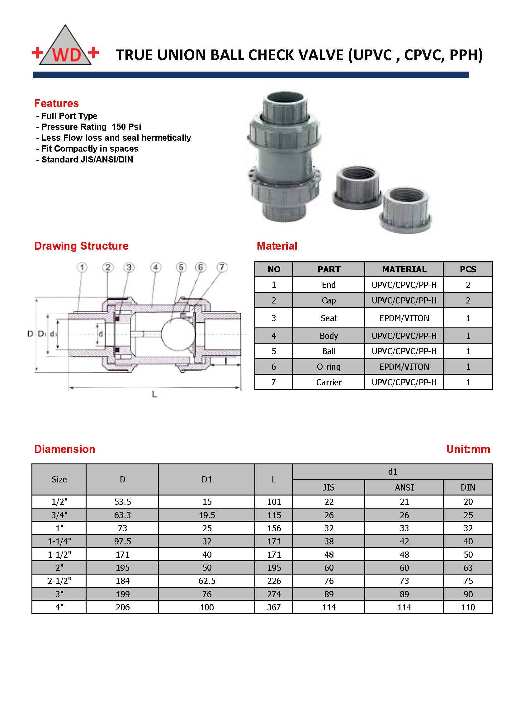 true union ball check valve"WD"