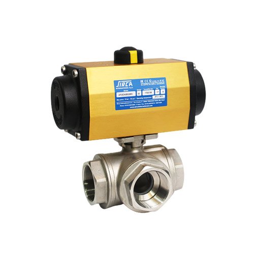 หัวขับลม SIRCA ประกอบกับบอลวาล์ว 3 ทางได้ทั้ง T port และ L port